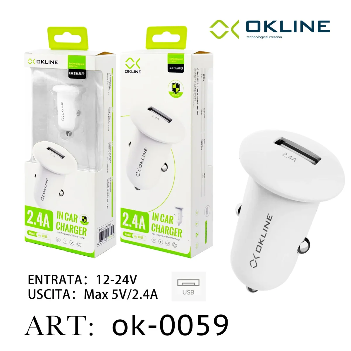 ART.OK-0059 OKLINE USB Caricatore Auto 2.4A Bianco GTIN 8057760590595
