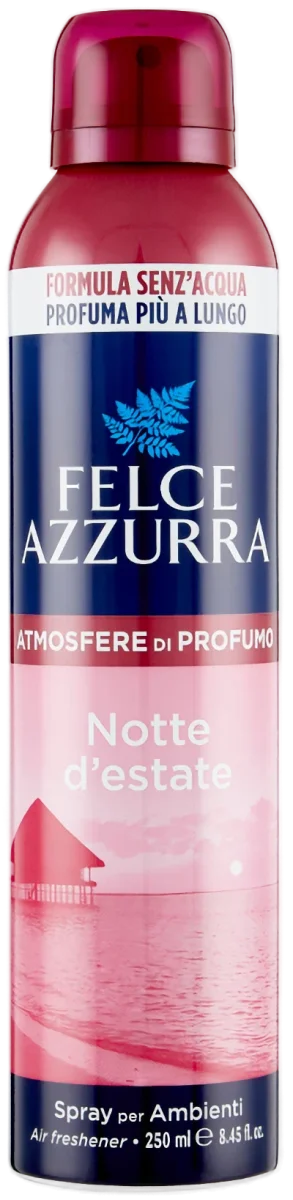 Il Felce Azzurra Profumo Ambiente Notti d’Estate 250ml è uno spray per ambienti dalla fragranza intensa e avvolgente, ispirata alle atmosfere calde e rilassanti delle serate estive. Neutralizza i cattivi odori e diffonde un profumo elegante e persistente in casa.