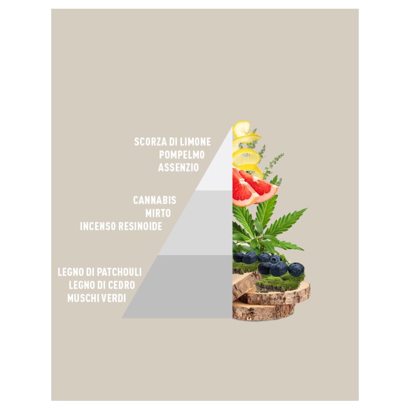 NOTA OLFATTIVA: Cannabis, fresca, legnosa, agreste