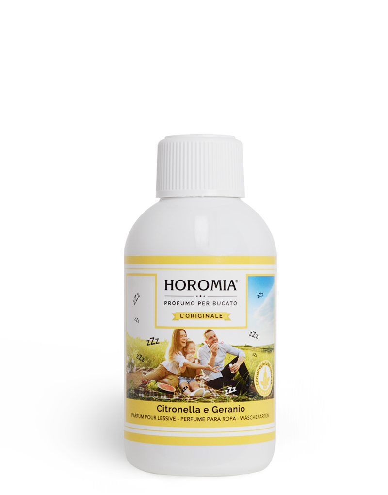 Le Essenze Horomia trasformano ogni lavaggio in un’esperienza fresca e rigenerante. Con poche gocce, i tuoi capi si impregnano di una fragranza agrumata e fiorita, ideale per la bella stagione. La presenza naturale di citronella e geranioconferisce alla profumazione anche una delicata azione rinfrescante e sgradita agli insetti, perfetta per i mesi estivi.