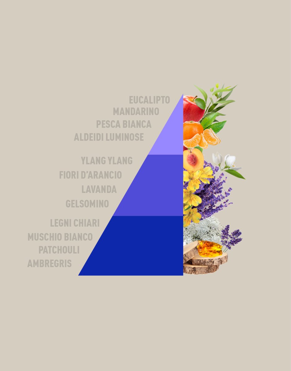 🌿 Fondo: legni chiari, muschio bianco, patchouli, ambra grigia