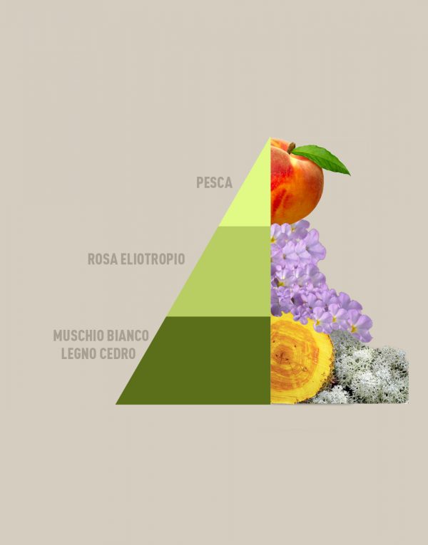 Una melodia olfattiva luminosa e raffinata: si apre con la dolcezza succosa della pesca, si evolve in un cuore fiorito e vellutato, e si chiude con una scia calda e pulita che abbraccia i tessuti con eleganza.
