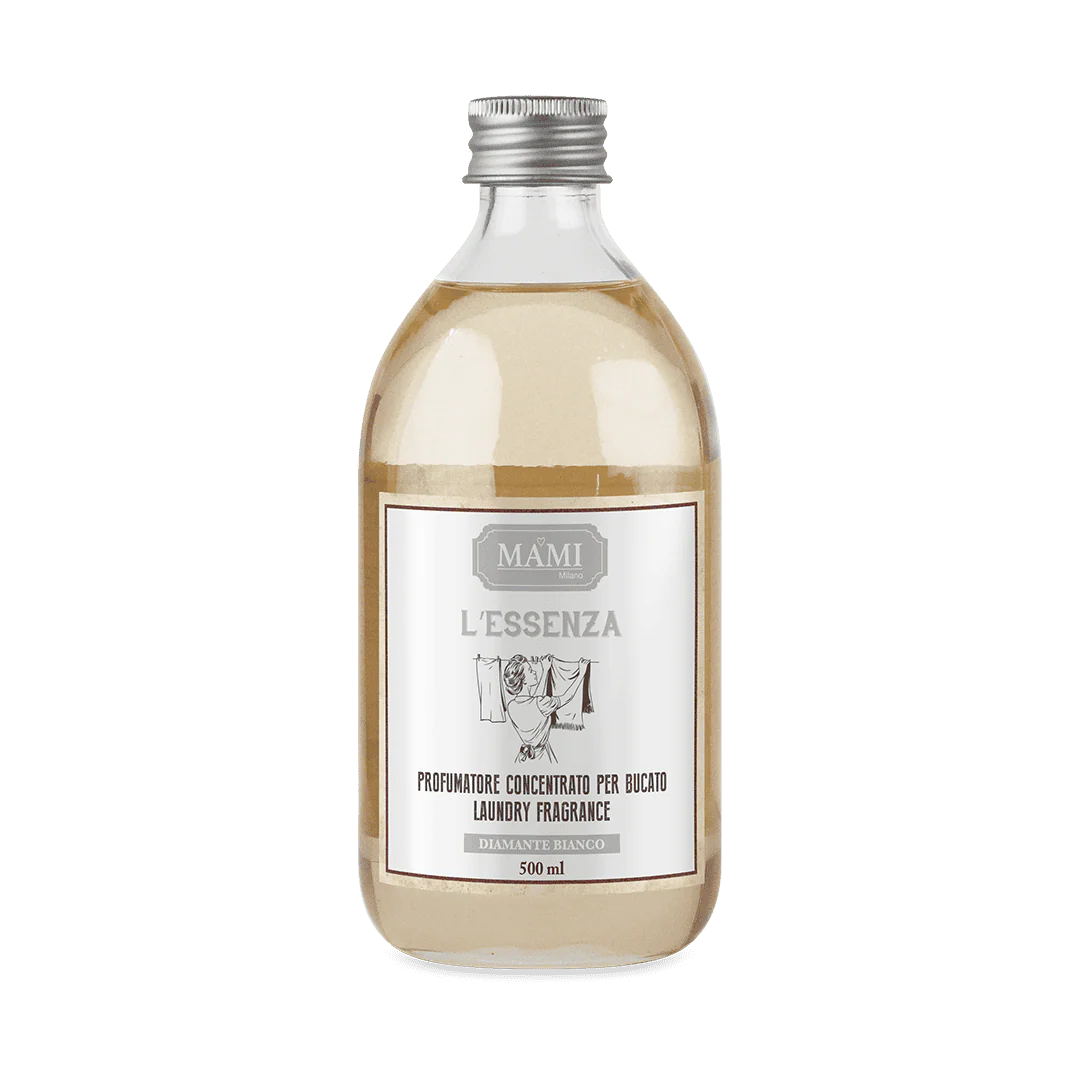 L’Essenza MAMI Milano accompagna con eleganza ogni fase della cura dei tessuti: dal lavaggio all’asciugatura, fino alla conservazione nei cassetti e negli armadi, dove la fragranza si diffonde nel tempo, donando ai capi un profumo intenso e raffinato.