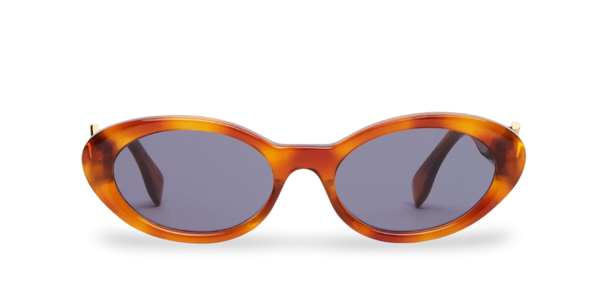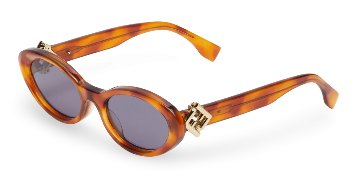 Occhiali FF Diamonds FE40140U dalla forma ovale in acetato havana chiaro. Aste con cerniera FF Diamonds funzionale in metallo color oro. Lenti blu.
