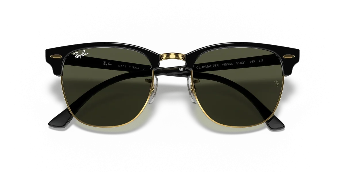 I Ray-Ban Clubmaster Classic reinterpretano una delle silhouette più iconiche del brand, combinando estetica heritage e design contemporaneo. La struttura in acetato nero con dettagli metallici oro valorizza la tipica forma squadrata del modello, creando un contrasto elegante e raffinato che richiama lo stile d’ispirazione vintage.