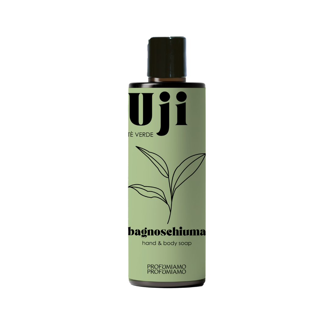 Regalati un momento di benessere e bellezza con Uji, il bagnoschiuma al fresco profumo esotico di tè verde, pensato per detergere la pelle con delicatezza e regalarti una sensazione di energia e purezza.